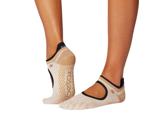 FULL TOE GRIP BELLARINA Bellarina has everything you need in a barre sock. Bellarina struts her stuff with a heel tab that provides extra comfort and protection to the Achilles tendon. She rocks an arch band for graceful lift and support. Wear Bellarina for all barefoot activities like barre, Pilates, yoga, and dance. Stick To Your Practice™. -Patented non-slip grip keeps your feet in place -Five toe design allows toes to move and spread naturally -Hygienic alternative to bare feet -Fitted heel keeps sock in place to eliminate bunching and twisting -Made with organic cotton -Unisex sizing 90% Organic Cotton 8% Spandex, 2% Other Fiber. Printed socks: 58% Polyester, 32% Cotton, 8% Spandex, 2% Other Fiber. Machine washable. Wash inside out in gentle cycle. Line dry or low heat in dryer. No bleach or iron.