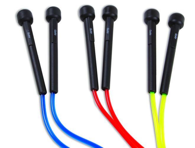 Ideal workout gear to-go, the GoFit Lightning Rope quickly stows into its own compact travel canister. The slim-line handle design and durable flex rope are the perfect lightweight components for speed rope training. Get optimal cardio benefits, while strengthening your core and toning your body with lightning-fast results.