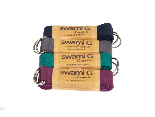 ESSENTIALS STUDIO STRAP Swami G’s studio strap is designed for durability and performance. Introduce what’s possible for your students by providing little support and inspiration. The metal d-rings make for quick and easy positioning, and they’re machine washable for continued use, class after class!