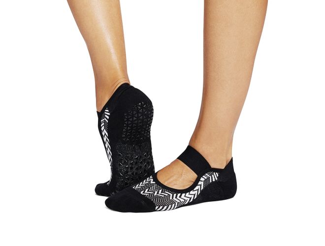 Lola Grip Socks wow with a single mesh band that falls across the top of the foot. Her low profile hugs just below the ankle while Tavi Noir's stellar grip sock pattern safely moves you through barre, Pilates and yoga classes. Technical features: Single band strap to keep sock in place
